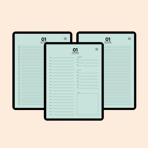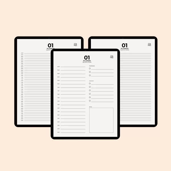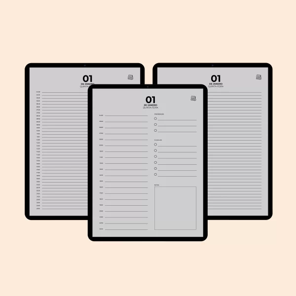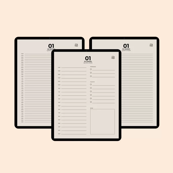 Agenda Digital 2026 “Minimalist” com 1 PÁGINA POR DIA + 3 MODELOS